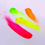 دسته رنگهای اکریلیک فلورسنت بازتاب نور بیشتری نسبت به اکریلیک متالیک و پوشانندگی کمتر نسبت به اکریلیک ساده دارد که از مشخصههای اصلی رنگهای اکریلیک فلورسنت میباشد. جذابیت و شادابی این طیف رنگی مورد توجه است.